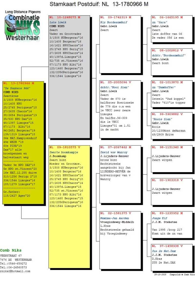Dcht. van de "Donkere 966" is ook een topper bij Mario Vogel Bodegraven en kinderen eruit doen het ook goed.o.a 5e NPO st.Vincent"20 en een 9e NPO DAX"18 enz.